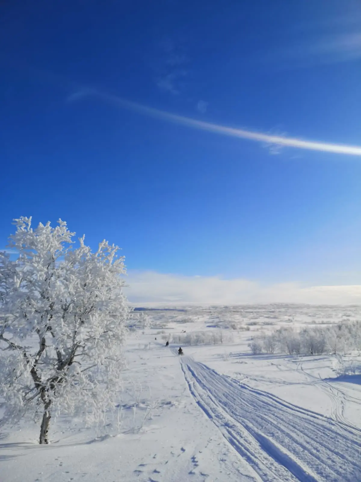 Life on the vidda, the plateau, is simply enchanting. Endless stretches of pristine white landscapes greet us, with few souls in sight. Every hill and turn unveils a new, awe-inspiring vista. Each day feels like an exploration of the unknown.